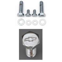 Chevy Bowtie Fuel Pump Bolts, Small Block, Chrome, 1955-1957