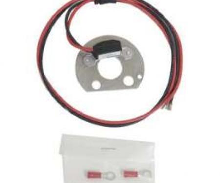 Updates Your Stock 235ci Distributor To HEI More Reliable, Hotter Spark Than Points-Type Ignitions Completely Hidden, No External Box Huge Dwell Accuracy Improvement Magnetic Type Sensor Uses Stock Or Flame Thrower Coil Easy Bolt-On With 2-Wire Hook-Up There?s absolutely no need to contend with the technology of the 60?s and before, when you can bolt-in today?s electronic timing benefits in the form of the Ignitor! This system works with any coil, MSD or Jacobs, aftermarket system, and gives you a huge improvement in your ignition dwell. Plus the whole conversion remains under the stock cap so for restorers the car appears dead stock. Technically speaking, this ignition has rotating cobalt magnets which trigger an electronic switching module commonly referred to as a ?Hall? effect integrated circuit. Practically speaking, this means you?ll always have perfect dwell regardless of how high you operate in the RPM band.