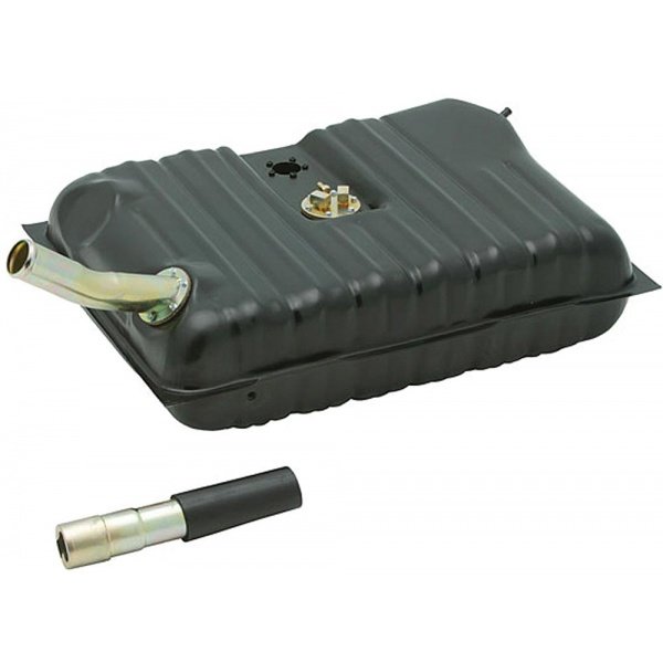 Stamped Steel Stock Capacity Tank Includes Straps And Gaskets Internal Baffles And Reservoir Tray Includes Pickup Tube Assembly With Large 3/8 Pickup, Return And Vent For Use With Carbureted V8 Engines Accepts Walbro In-Tank Pumps For Use With Late Model Fuel Injection Accepts Stock Sending Unit Bolt-On Adjustable Filler Neck