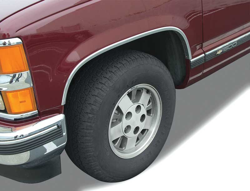 Reproduction front wheel opening molding for 1988-2000 Chevrolet and GMC GMT400 Series truck models. Each molding is stamped to original factory specifications featuring correct contours and a bright polished finish for a factory fit and appearance. Each wheel opening molding includes a complete set of screws for installation. Fits 1988-2000 Chevrolet and GMC GMT400 Series Pickup and SUV Models. Replaces OE # 15546443.