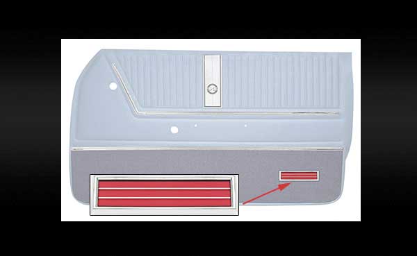 OER® reproduction of the original door panel reflector found on a wide variety of 1964-79 GM models. Manufactured in zinc die-cast metal, then polished and chrome plated for a brilliant shine. Lens is injection-molded manufactured with reflective material in the correct red color. Features a pre-attached backing plate with mounting feet for easy installation. For use on front or rear doors. Measurements: 6 1/4" long x 1 3/4" wide x 3/8" high. Sold individually. 2 required for 2 door models. 4 required for 4 door models.