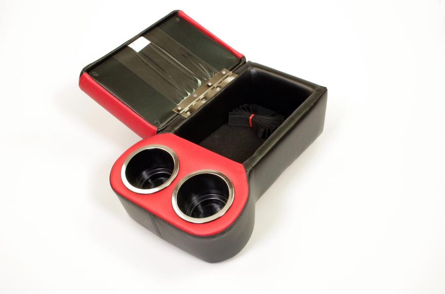 Our large-sized drink holders are included with this console, they accommodate virtually all types of soda & energy drink cans, most plastic water bottles and larger coffee cups. The bottom half of our large drink holders have a unique step down shape to allow smaller drink containers a secure hold while the upper half is large enough to hold bigger beverages with larger diameters.