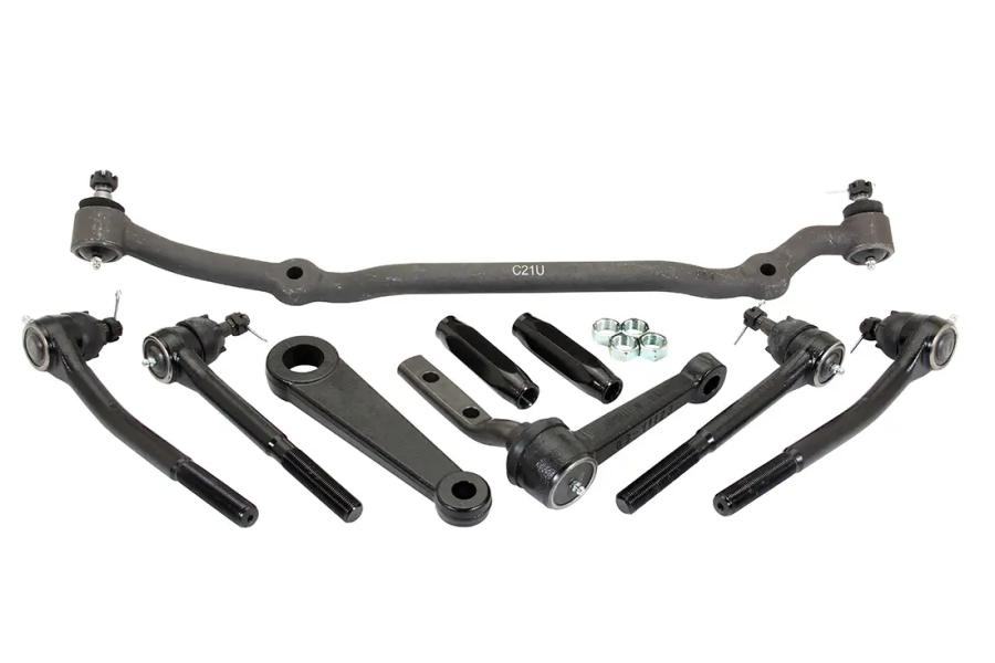 The CPP Complete Steering Linkage Kit (Part Number 7581SLK-CP) fits 1975-1981 Chevy Camaro. Designed for power steering systems. Features durable black sleeves. Ensures precise steering control. Easy installation.