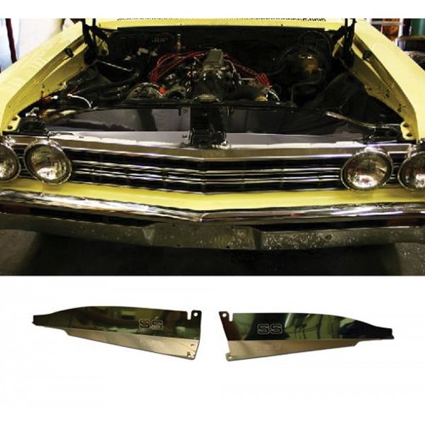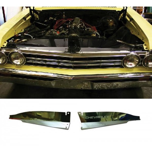 This Chevelle core support filler panel has been manufactured to meet or exceed factory specifications and performance. Installed above the front of the radiator, these panels direct the air flow through the radiator instead of allowing it to pass over the top. They also keep the hot air from recirculating back to the front of the radiator when idling. You will find the fit and function will work perfectly for your vehicle.