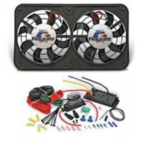 Draws 14-22 Amps The Flex-A-Lite Dual Electric Radiator Fan System is the most powerful system on the market today. It pulls 2500 CFM and totally eliminates the need for the stock fan and shroud. The dual 12 fans fit compactly in a shroud area and measures only 2-5/8 in depth, 26-1/4 across, and 15-1/2 high. With these measurements, it will fit almost all Chevy's (please measure your radiator core before ordering) and can be mounted either on the radiator core support with supplied brackets or through the radiator using mounting straps. This system allows you the flexibility of operating both fans thermostatically or one on continuously and one thermostatically. All mounting hardware and instructions are supplied.