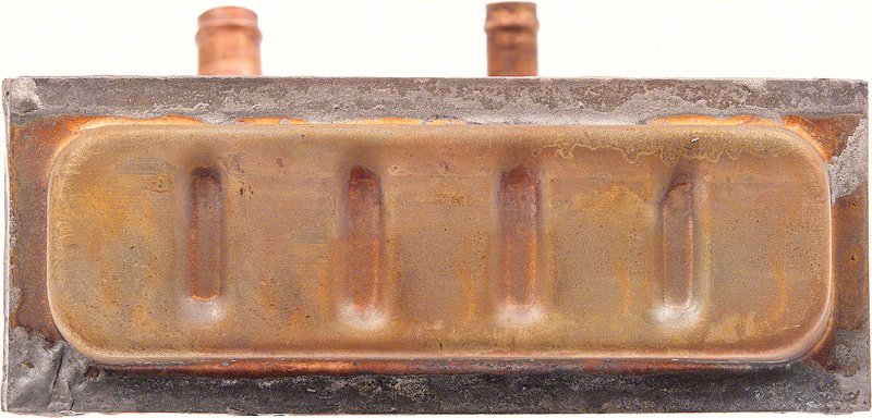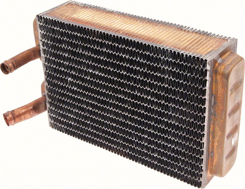 Original reproduction style heater core assembly for use with various 1963-64 Chevrolet Impala, Bel Air, Biscayne, and 1964-67 Chevelle, Malibu, Cutlass, F85, GTO, LeMans, and Tempest models without air conditioning. Each heater core is manufactured to correct factory specifications and features a copper core and brass tank. Replaces original exactly and mounts inside heater box assembly. Be sure to check the original heater core measurements to insure a proper replacement. Measures 9 1/2" x 6 3/8" x 2 1/2".