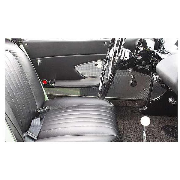 To match those 100% leather seat covers, these deluxe version leather door panels are just the thing. Complete deluxe door panels have Metal upper supports,Trim strips, reflectors and door opening bezels. This makes your installation a snap. Only available for red or black interiors.