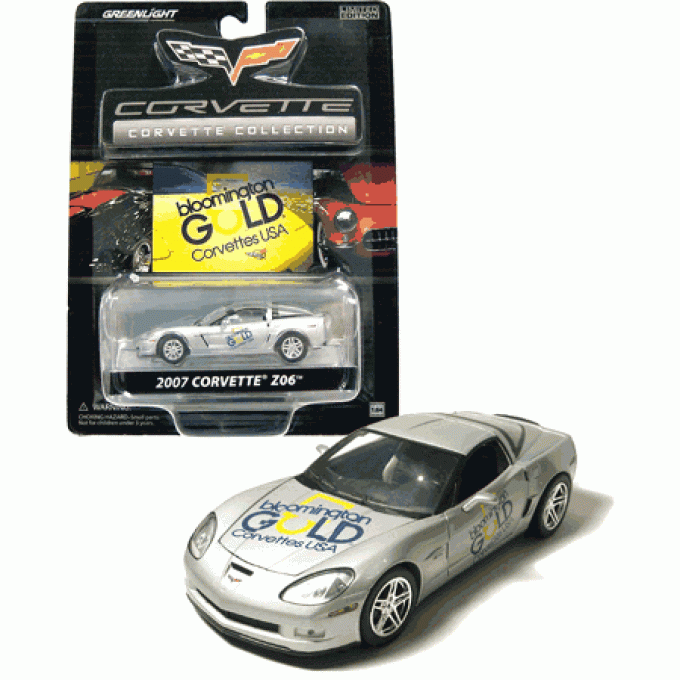 Celebrate the Bloomington Gold experience with this very limited edition die cast. A Silver Z06 Corvette is showing its pride by donning the Bloomington Gold logo on the doors and hood. Even the license plate signifies Bloomington Gold. This will be the first edition in a series of Bloomington Gold die cast Corvettes brought to you by Vette Collectibles. The Silver Z06 Corvette die cast features opening doors, hood and trunk. It is also created with a metal chassis and is consecutively numbered to just 504 pieces on the chassis.Only 504 pieces will be produced and will be available at the Bloomington Gold event held June 15-17, 2007.