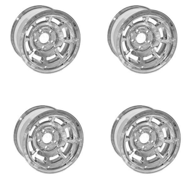 A Corvette-style aluminum replacement wheel may be just the extra style your 1964-1983 Chevelle needs. Your clear coat on your stock wheels can discolor, stain, flake off and your wheels can become scratched and pitted. You could have them professionally refinished but doing it right is expensive and takes a lot of time. In reality, refinishing them can easily cost you more than buying a new set. x8?reproduction wheel. This 15?x8" wheel is constructed of one piece cast aluminum and features a new advanced wheel finish called PVD chrome. PVD Chrome is superior to traditional chrome plating because it won?t crack or peel, its proven durable in all climates, it?s easy to clean, and it?s environmentally friendly. Like the factory wheel, this wheel accepts O.E. valve stems, center caps & emblems, and lug nuts (not included and available separately). The wheels on your classic Chevelle set the style for the rest of your car to follow. These Corvette-style wheels are constructed of aluminum and are reproductions of the Corvette wheels. Note: May rub the front inner or outer fender when turning. NOTE: Requires Lug Centric Wheel Balancing (NOT Balancing From The Center Hole). Does Not Include Valve Stems, Center Caps, Emblems, Or Lug Nuts (see Related Items above). We Recommend Using Tires With The Same O.D. As The Tires You Have Now To Maintain Speedometer Accuracy. If Not, You May Need To Purchase Different Speedometer Gears For Your Transmission. Use Self Adhesive Wheel Weights On The Inside Of The Wheel For A Cleaner Look. Cleaning With Soap And Water Is Preferred. Wheels Are Not Returnable Once Mounted.