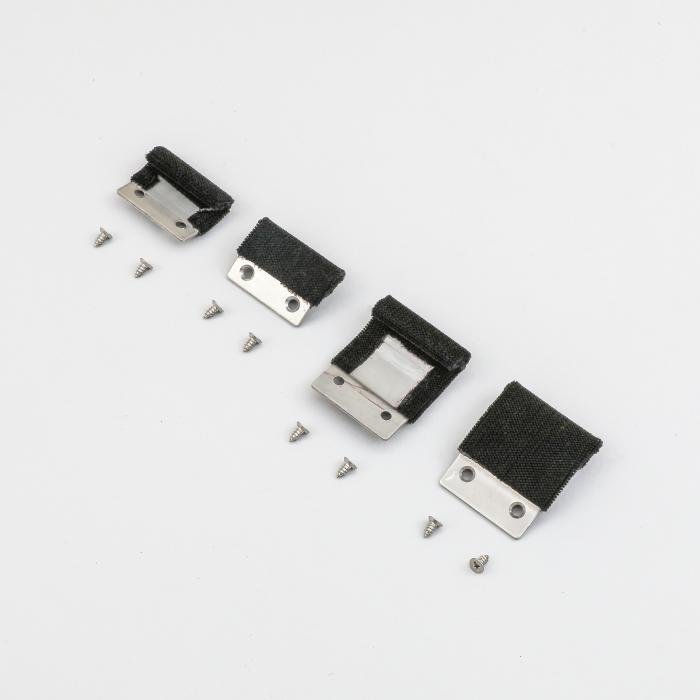 DMT NEW STAINLESS set of (4) door window guides /stabilizers for 1970 E Bodies; Barracuda, Challenger WITH 8 special stainless steel, undercut, Phillips head, countersunk screws.