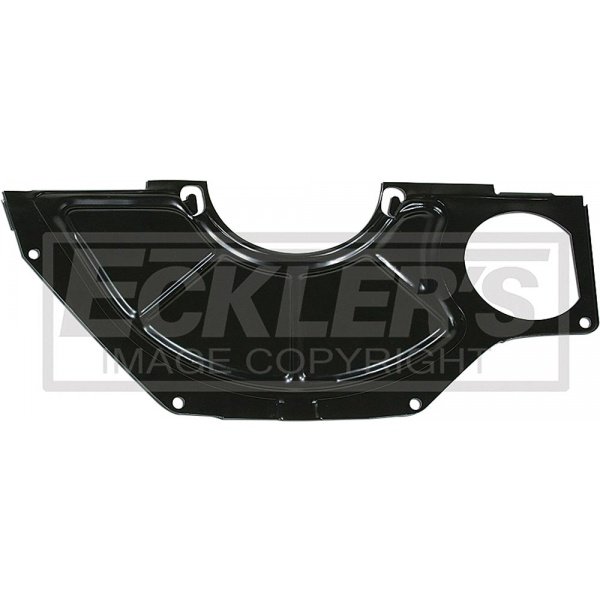 Stock Replacement Original GM Part Stamped Steel Semi-Gloss Black Fits 6-Cylinder & V8 Engines Using A 10? Bellhousing & 153 Tooth Flywheel For Manual Transmissions Whether you are hearing unwanted rattling vibrations from your transmission, or you're starting to experience clutch failure, chances are that you are in great need of a new flywheel bellhousing dust cover plate for your 1976, 1977, 1978, 1979, 1980, or 1981 El Camino with an 10.5 clutch and manual transmission. Without a dust cover inspection plate or with one that is very worn down, your ring gear is exposed to constant dirt and road debris. Over time, debris and other objects can clog up your flywheel and clutch area, causing premature clutch failure. Clutch failure in your Chevrolet can be reported from a feeling of slipping, where the clutch does not fully engage or disengage. Further wear on your clutch can cause overheating until the clutch will eventually fail altogether, which can be a dangerous situation. The El Camino Store offers this 403 style flywheel bellhousing dust inspection cover plate, made from stamped steel with a black glossy finish. This original GM metal plate for your 302 Z28 attaches to the bellhousing and promises to protect the flywheel and clutch from any future road debris. This dust shield will also keep outside debris away from your ring gear and flexplate. You will not have to remove your transmission to apply a new dust cover inspection plate, so installation should be simple and effective. From racers, show cars, hot rods, and daily drivers, you can trust The El Camino Store for all of your restoration and replacement needs for your 1976, 1977, 1978, 1979, 1980, or 1981 Chevy El Camino!