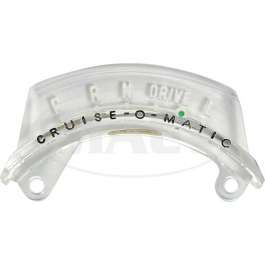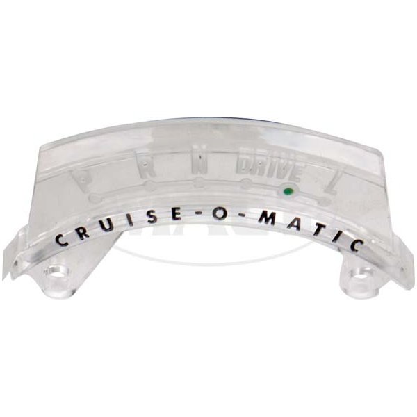 We now have available an exact reproduction of the original shift indicator lenses found in 60/65 Rancheros, Falcons and Fairlanes. Both lenses feature correct paint markings and are made of injection molded clear plastic. This is a 3 speed transmission indicator lens for c4-crusiamatic transmission. Will fit 64 and 65 Fairlane. This part contains letters p,r,n, drive, l with a cruise-o-matic writing underneath of it. Drive is in two positions, with green dot.
