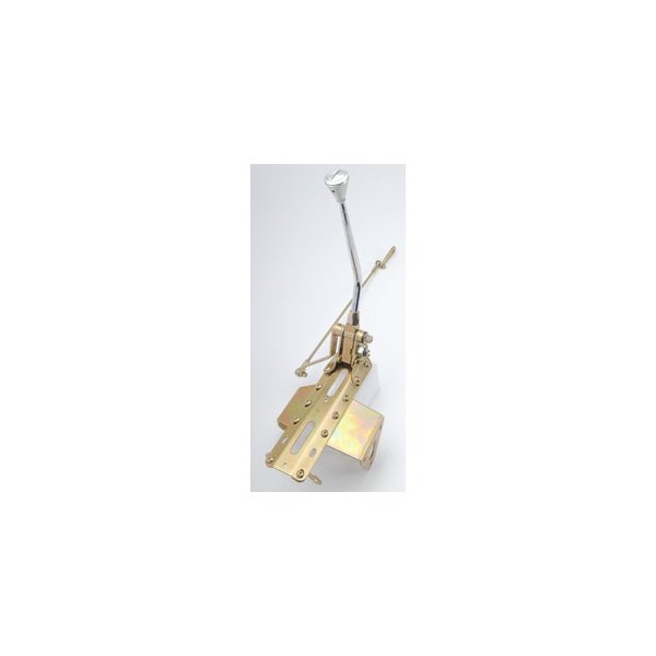 Features include: Neutral safety switch, operates with solid adjustable linkage, high quality rod ends, 360 degree lever rotation for extra leg space, lever adjustments for dash and seat clearance, Teflon-line shifter knob buttons for smooth operation, easy to remove shifter knobs for simple boot installation, and gold-iridted main plate and brackets.