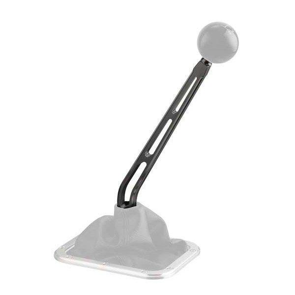 Lokar Billet Aluminum Tremec/Borg Warner Shifter Levers feature a standard 2-bolt-flange measuring 7/8", shifter knob threading of 3/8"-16, drilled and counter sunk settings for metric cap screws, a machine billet steel mounting stud, and sculpted windows for a clean, smooth, modern appearance. The Lokar Billet Aluminum Tremec/Borg Warner Shifter Levers complement other windowed Lokar products, like P/N 133572 or 133571 Gas Pedals.