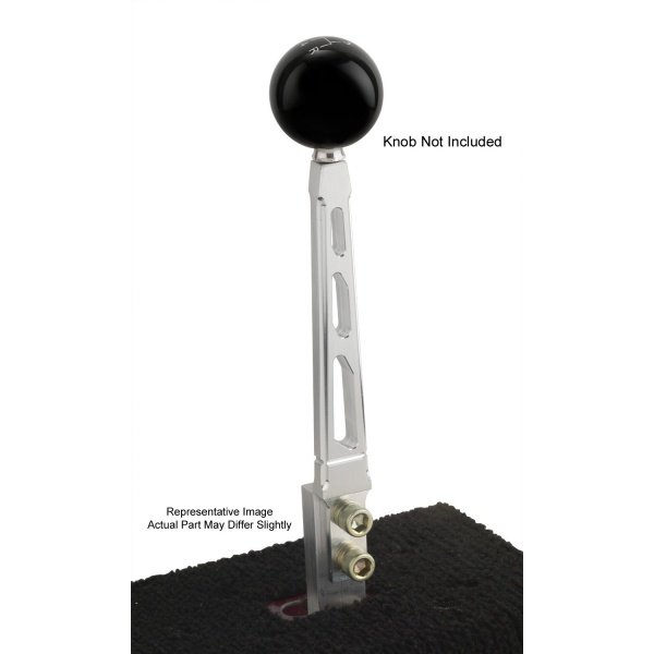 Lokar Billet Aluminum Tremec/Borg Warner Shifter Levers feature a standard 2-bolt-flange measuring 7/8", shifter knob threading of 3/8"-16, drilled and counter sunk settings for metric cap screws, a machine billet steel mounting stud, and sculpted windows for a clean, smooth, modern appearance. The Lokar Billet Aluminum Tremec/Borg Warner Shifter Levers complement other windowed Lokar products, like P/N 133572 or 133571 Gas Pedals.