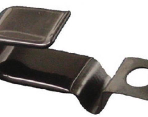 Correct reproduction positive cable oil pan clip (requires two). Rubber coated spring steel with correct bolt hole size and oil pan clearance bends as original.