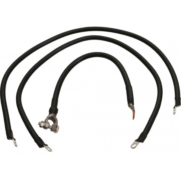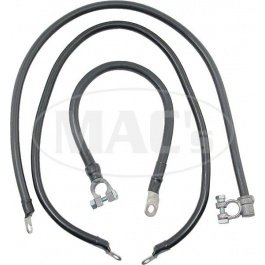 Cable sets include a battery to starter relay cable, a starter relay to starter cable, and a battery to ground cable. All terminals, boots, heads & mouldings have been duplicated to precise detail for your vintage T-Bird. The wire insulation is original neoprene rubber. A ground strap was also used at the back of the engine head and is not included in the sets.