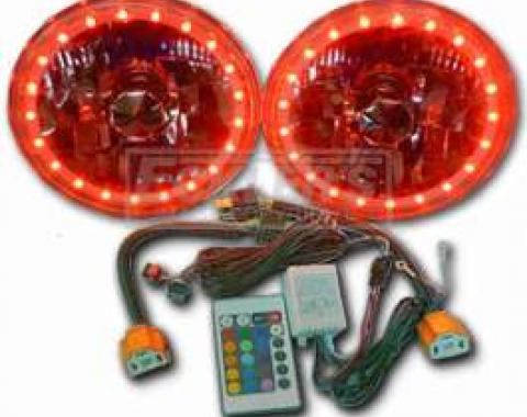 This replacement headlight has a powerful ultra white Halogen bulb with an all white halo ring and it will fit your Nova or Chevy II with a little modification to the back of the headlight bucket. The LED ring lights up with 16 different…