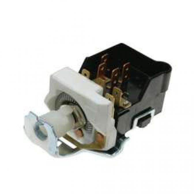 Reproduction Of Original Your 1971, 1972, 1973 El Camino or GMC Sprint is better seen than not. You know that every time you pull into a gas station or get a crowd at the local car show your baby really turns heads. Well, the same is true when driving at night. You just don?t want to been seen but need to be and having a faulty 1971, 1972, 1973 El Camino or GMC Sprint headlight switch is not only inconvenient but down right dangerous. Over the years, these switches deteriorate leading to bad rheostats or simply out right failure. Symptoms may include a burning electrical smell from your dash when your 1971, 1972, 1973 El Camino headlights are on, inability to dim or adjust your instrument panel lights, poor or faulty movent of the mechanical parts or flickering of the lights. Even though your 1971, 1972, 1973 Chevy El Camino headlight switch is fairly simple to replace, we always recommend consulting your 1971, 1972, 1973 El Camino or Sprint service shop manual. First, you will need to access the back of the switch where you will find a small 1/4 inch button. Pull the knob while simultaneously pressing the little button. Your headlight knob should then come out. Next, unscrew the round nut that holds the switch to the dash. Pull your Chevy or GMC headlight switch out from behind the dash and unplug it from the harness. Then, just reverse the actions to re-install. It?s that easy. Here at the El Camino Store we always strive to bring you the best in high quality electrical components. Your 1971, 1972, 1973 El Camino deserves the best.