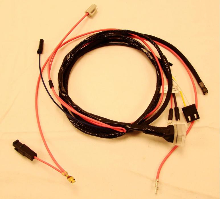 Engine harness design varied significantly from year to year, but most will contain wiring for the ignition system, starter, heater blower, and temperature/oil pressure sender wires if applicable. Some vehicles used a capillary tube to provide an oil pressure reading, so these will not be included in a wiring harness.