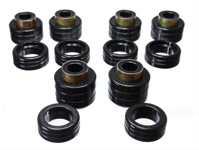 Will replace distorted and worn-out original rubber mounts to maintain car body and truck cab to bed alignment. Original rubber mounts are so soft they often crack, distort, and crush so badly they often fall off. And aluminum body mounts are too harsh for street use that they tend to break and cause other components to break.Energy's specially formulated Hyper-Flex(TM) polyurethane cab and body mounts combine the best qualities of both: they're soft enough for a smooth ride, yet rugged enough for the most demanding road or track.Most sets have a strong zinc plated steel ring molded into them - for added durability and when the application requires it.