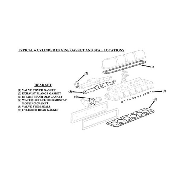 Head set: Contains all necessary gaskets and seals required to remove and replace the cylinder head(s) and to grind the valves. Does not contain carburetor, carburetor PCV adapter block, or large tin bathtub intake manifold gaskets.