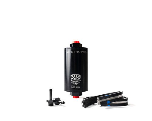 The Vapor Trapper™ can be easily mounted using two 2-1/2” clamps put in line with your fuel tank vent line. Use #6 AN O-ring Boss fitting (barb fittings with a rubber fuel hose or a threaded AN fitting for a more custom installation). Make sure to install the Vapor Trapper™, or at least the inlet line, far above the fuel tank to avoid liquid fuel getting into the filter. Fuel getting into the Charcoal media drastically reduces the performance of this product. If this occurs, please contact us so we can recharge your Vapor Trapper™.