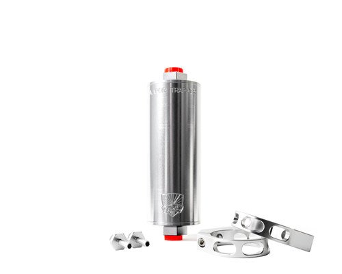 The Vapor Trapper™ can be easily mounted using two 2-1/2” clamps put in line with your fuel tank vent line. Use #6 AN O-ring Boss fitting (barb fittings with a rubber fuel hose or a threaded AN fitting for a more custom installation). Make sure to install the Vapor Trapper™, or at least the inlet line, far above the fuel tank to avoid liquid fuel getting into the filter. Fuel getting into the Charcoal media drastically reduces the performance of this product. If this occurs, please contact us so we can recharge your Vapor Trapper™.