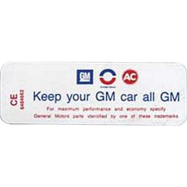 Camaro Air Cleaner Decal, Keep Your GM Car All GM, 250, 6-Cylinder, 1970