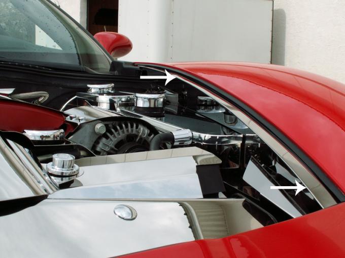 Dress up your Corvette with our Polished - Stainless Steel, Fender Caps. These trim pieces are designed to fit all 2005-2013 Corvettes on the inside of the front fenders and add a clean stylish look to your Corvette engine bay. Compliments our Perforated Plenum Cover - 043025.
