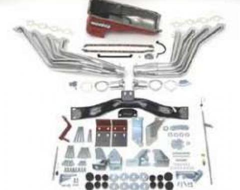 Moves Engine Forward 2-1/4 For Maximum Firewall Clearance Requires Use Of A 6-Cylinder Position Radiator Includes: Engine Brackets, Headers, Transmission Crossmember Kit, Deep-Sump Oil Pan & Pickup For Use With 1965-90 Big Block Chevy…