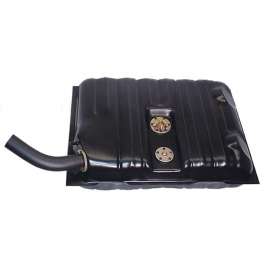 Stamped Steel Stock Capacity Tank Includes Straps, Gaskets & O-Ring Sealed Screws Internal Baffles And Reservoir Tray Includes Pickup Tube Assembly With Large 3/8 Pickup, Return And Vent For Use With Carbureted V8 Engines Accepts Walbro In-Tank Pumps For Use With Late Model Fuel Injection Accepts Stock Sending Unit Bolt-On Adjustable Filler Neck 25-1/4 x 21-1/4 x 10-3/4 Alloy Coated Steel