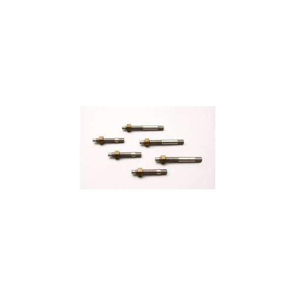 Exhaust manifold studs will need to be replaced because the high temperatures will wear exhaust parts out prematurely. Six studs and six nuts are correct for restoration purposes and they work just fine for a conversion.