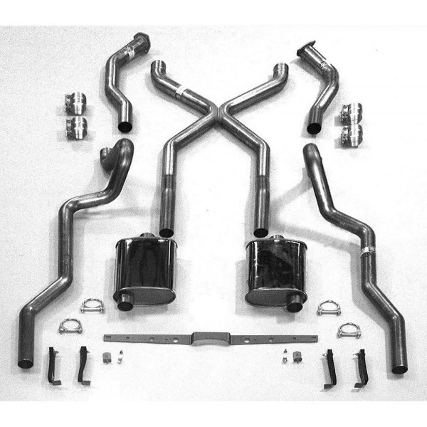 Chevy SCR "X" Turbo Performance Dual 2-1/2" Exhaust System,With Corner Exit Tailpipes, For Use With 3/4 Length Shorty Headers, Small Block Stainless Steel, 1955-1957: