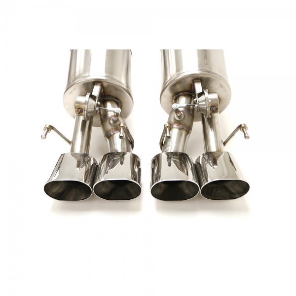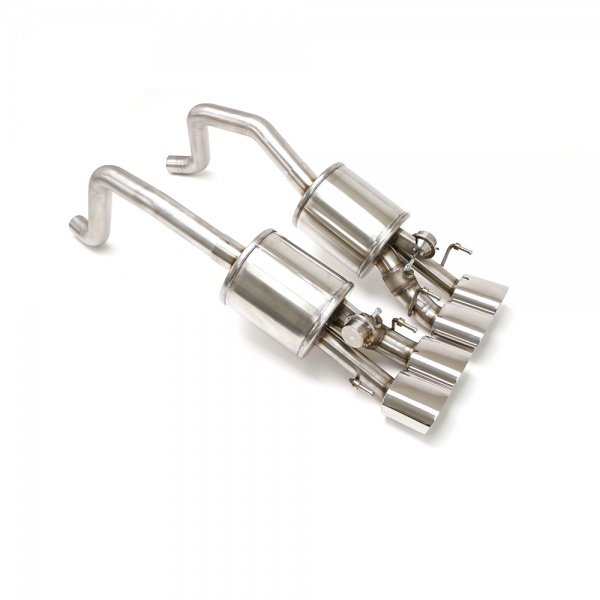 Hand fabricated from 100% T-304 stainless steel, the 2.5” CNC mandrel bent tubing provides a smooth unrestricted exhaust flow for increases of as much as 15 horsepower and 16 foot pounds of torque at the rear wheels. A direct bolt-on replacement utilizing the factory mounting locations the installation of this system requires no cutting or welding and includes all mounting hardware. Quad 4.5” oval double wall tips give the car a bold yet distinctive look. No emission components are altered with this system therefore it is 50 state emissions legal and is backed by a limited lifetime manufacturer's warranty.