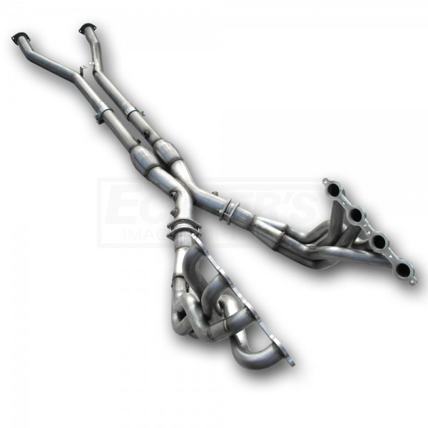 Anytime you add substantial modifications to your C5 Corvette such as heads & cam, a built stroker engine, or a supercharger, youll need to address the exhaust system. The factory exhaust manifolds, as good as they are, keep you from realizing your engines full power & performance potential. By smoothing and maximizing exhaust flow with a larger diameter full length header, youll notice substantial gains in power. With highly modified engines, this system will yield a major improvement in horsepower and torque! American Racing Headers full length C5 Corvette headers enable you to fine tune your vehicle to match your upgrades. This header system includes 18 gauge 1-7/8 inch primary tubing with .375 thick surface ground flanges, and 16 gauge 3 inch merge collectors with leak proof ball and socket flanges. American Racing Headers exclusive cat forward x-pipe location maximizes power and allows you to run stock or aftermarket cat-back exhaust systems. This header is complete with an off-road only 3 inch x-pipe & severe duty 49-state legal 3 inch converters, premium ARP Grade 8 header bolts, Flat Out racing gaskets, Accuseal band clamps, and instructions engineered specifically for your C5 Corvette.