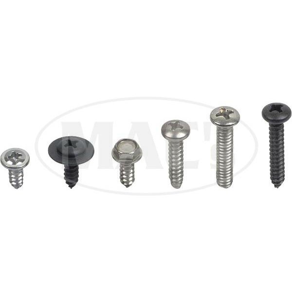 This new kit includes all the exterior screws used on your vehicle. Includes where applicable, headlight bezel screws, parking lens screws, license plate lens screws, taillight lens, and outside mirrors and wheel lip molding screws, get the complete kit and have more time to spend on your pride and joy.