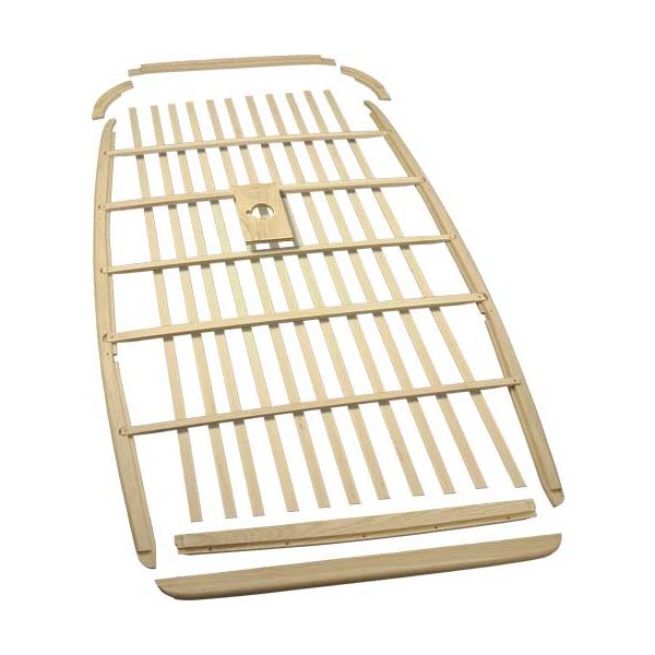 This kit includes: Top ribs, header, right and left side rails, rear cross member, rear corner rails, top slats, light board, and head board below the header.