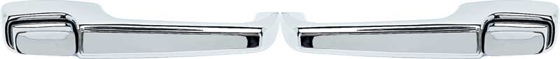 Reproduction of the original outer door handle and push button set designed for use with 1967-72 Chevrolet and GMC pickup, Blazer, Jimmy, and Suburban models. Each handle is precision manufactured in high-quality die-cast zinc and finished in brilliant chrome plating for a factory-correct appearance. This complete set includes both right-hand and left-hand outer door handles, push buttons, gaskets, and all necessary installation hardware. Designed as a direct replacement for the original GM parts, ensuring a perfect fit and smooth operation. Replaces original GM part numbers #3927895 and #3901463.