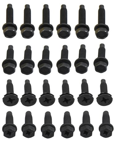 Correct door hinge bolt set for mounting steel and cast iron or aluminum hinges . Hinge to pillar bolts are 5/16-18 with "23" head marking. Hinge to door hex bolts have correct Phillips head.