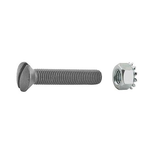 3 oval head slotted screws & 3 KEPS style locking nuts.