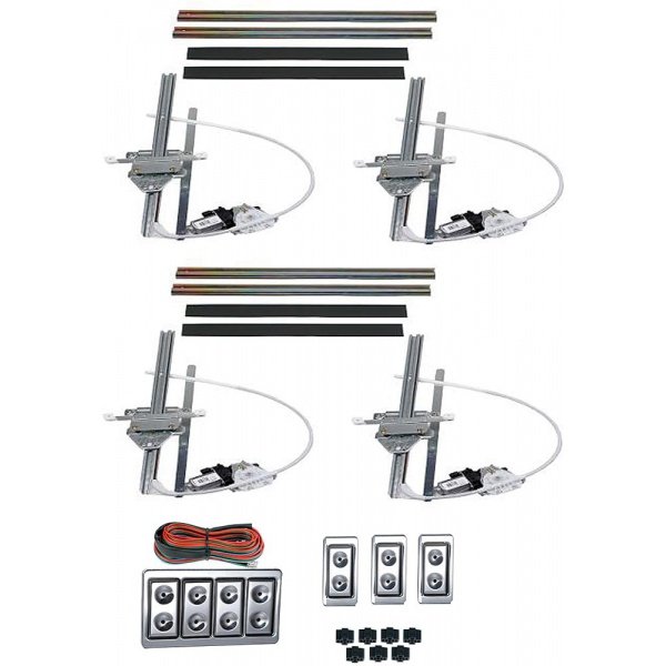 Custom Power Window Regulators And Motors Completes All Four Main Windows On 2 Or 4-Door Body Styles Includes Internally Lighted Billet Switches And Wiring For 12-Volt Systems Universal-Type Regulators Also Include The Lower Glass Channel That Screws To The Lower Glass Setting Channel Fits All Body Styles Front Or Rear Doors Some Minor Fabrication Needed To Install