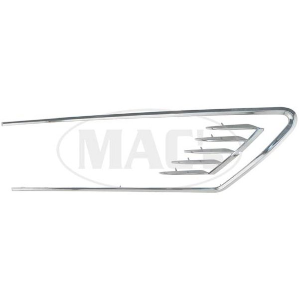 This the part that sets your 65 apart. Ford Motor Company advertising called it a simulated air scoop. It is also most commonly pitted, beyond repair or broken.
