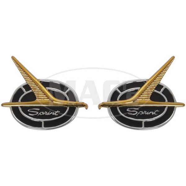 These hard to find Sprint Emblems are duplicated in intricate detail. Used on 1963 Sprints, except for the convertible. Sold in pairs. 2 each part #ebc101 included.