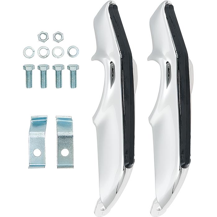 Reproduction of the original front bumper guards for 1967-68 Camaro models. Manufactured to exact factory specifications assuring a quality appearance and fit. Features bright triple chrome plating. Includes both LH and RH front chrome bumper guards, rubber inserts, brackets and mounting hardware for a complete installation. These deluxe style bumper guards install on the bumper and extend above and below the bumper.