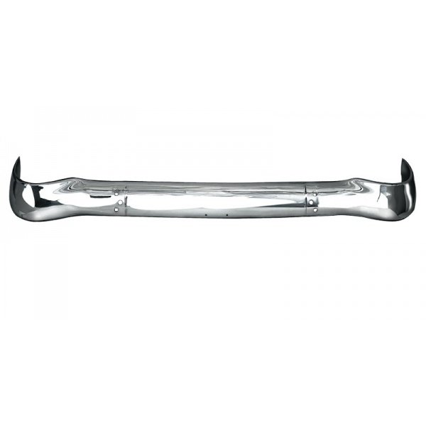 Show Quality California Bumper For 1955 Chevy High Quality Triple Chrome Plating Original Equipment On California Cars Fits All Body Styles Made In USA Sharpen up the front of your classic Chevy with one of our reproduction one-piece front bumpers. Also known as California bumpers, the original one-piece bumpers are quite rare and often difficult to chrome plate. The worries of straightening and chrome plating an original are gone with one of our show-quality reproductions! This one-piece bumper uses the same bumper brackets, hardware and guards as the standard three-piece bumper so nothing different or extra is required for easy installation.