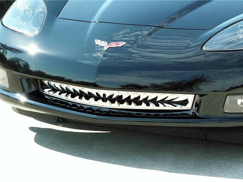 Dress up your Corvette with our Polished Stainless Steel Shark Tooth Style Front Grille. Our Shark Tooth Grilles are designed to fit all 2005-2013 C6 Corvettes in the front lower radiator air intake and add a clean stylish look to your Corvette exterior.