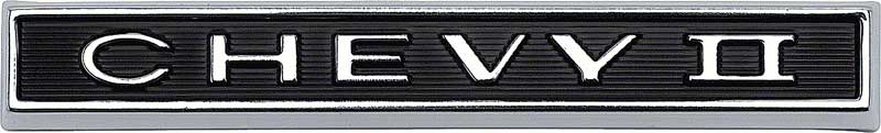 Reproduction of the original "CHEVY II" front grill emblem designed for use on all 1966 Chevrolet Chevy II models. This beautiful reproduction is manufactured in die-cast zinc replicating the original in quality and appearance. Includes correct CHEVY II lettering with black background as original. Measures: 6" long x 7/8" tall. Mounting hardware not included.