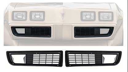 Reproduction of the original front grills designed for use on 1979-81 Firebird and Trans Am models. Manufactured in injection molded ABS plastic material for an original appearance and fitment. Each grill is finished in the original matte black coloration for authenticity. Comes with pre-attached 3M self adhesive tape around the perimeter and also includes screws with U -clips for easy installation. Includes RH and LH grills. Sold in pairs.