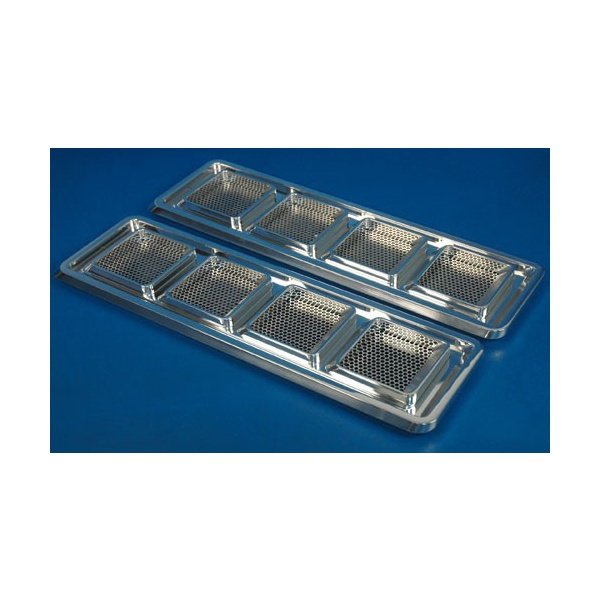Replacement Hood Ornaments Billet Construction, That Will Not Flake Or Peel Like Originals Beautiful Polished Finish Fits The Stock Super Sport Hood Hood Gasket Available Separately As Our Part # HD-11 Finally someone has manufactured a hood louver that will stand the elements without the finish peeling or flaking off. These beautiful polished billet Camaro hood louvers are machined from one piece of billet and then polished to a briliant luster.